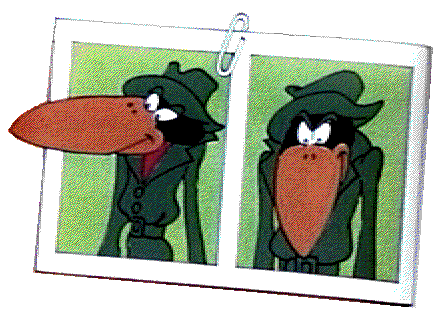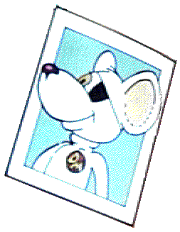 Cartoon. Danger Mouse is a white mouse with a black patch on his eye,